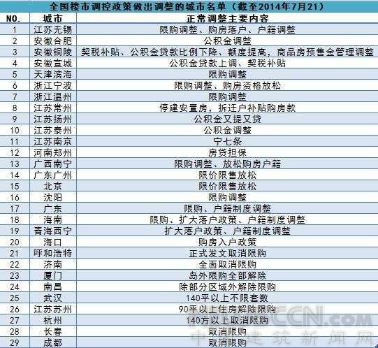 截止本周一,全國已經有29個城市放松或取消樓市限購政策,以下是今年以來對樓市調控政策作出調整的城市名單。
