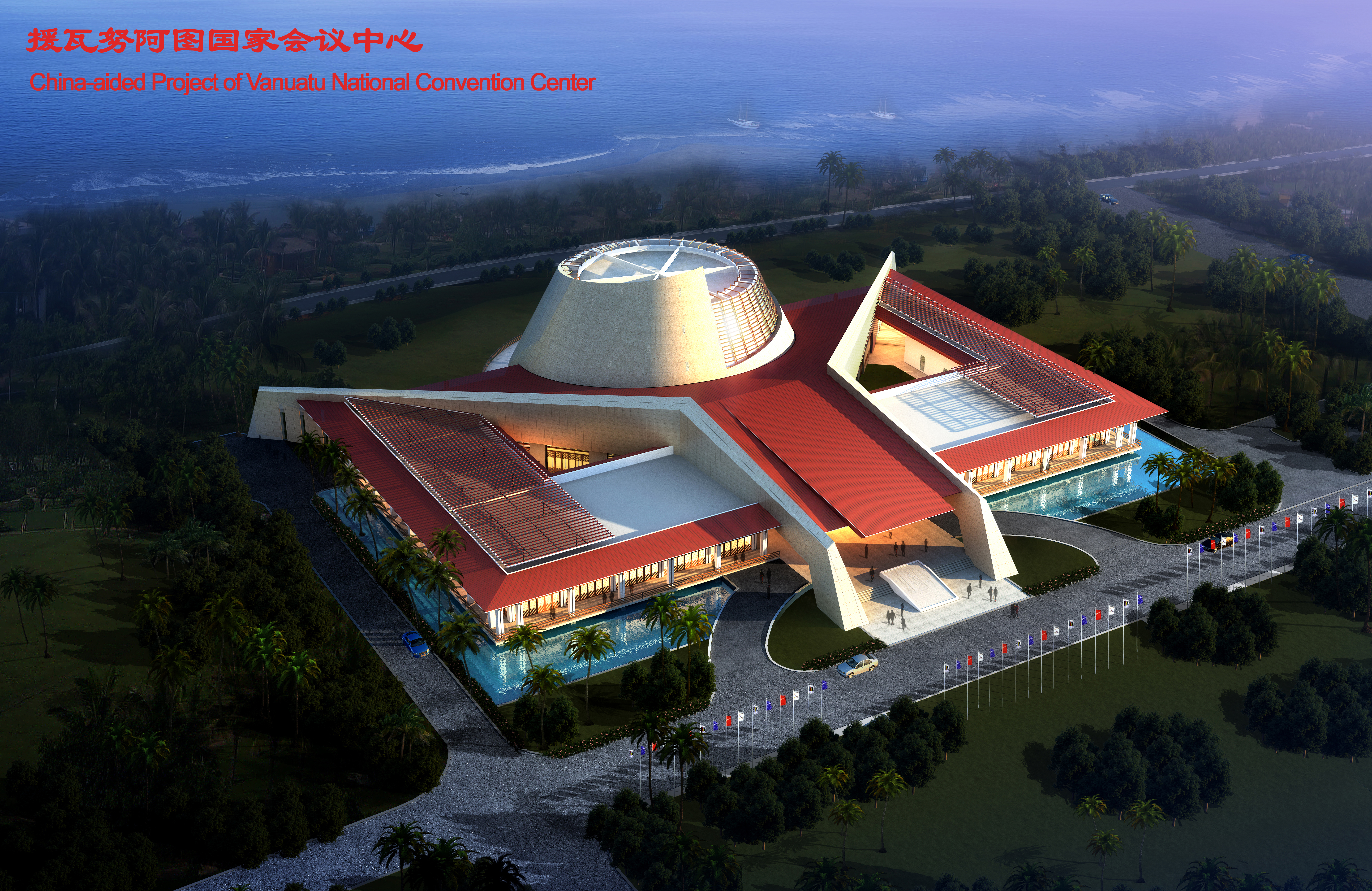 The Vanuatu National Convention Center is the largest foreign aid project in Vanuatu. With a total construction area of 6574 square meters, the building includes exhibit space, meeting space and restaurant/retail space.
